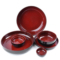 Фарфоровая красная глазурованная посуда высокого качества, набор для салата или супа, миски, блюдо и тарелки для супа